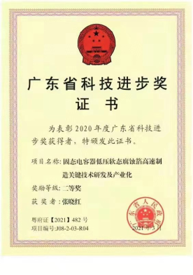 5月20日,广东省科技创新大会在广州召开,大会颁发了2020年度广东省科学技术奖。公司张晓红教授及其团队凭借优秀项目“固态电容器低压软态腐蚀箔高速制造关键技术及产业化”斩获广东省科学技术奖的科技进步二等奖。