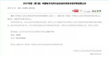 10月12日,2021年度中国电子元件行业协会科学技术奖评审结果公布,公司张晓红教授团队以高比容固态电容器低压软态腐蚀箔高速制造关键技术及产业化应用项目获科技进步奖二等奖。