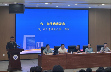 会议伊始,全体成员起立,奏唱国歌。随后周勇、谭晶莹、张敬、李凯分别讲话,就学校和学院发展建设情况,团队队伍、科研状况,研究生与旗下产业管理,学业规划,学风建设与社会实践,员工思想政治教育和日常管理等方面向新生作了详细介绍与指导。2024 级本科生代表张文静、研究生代表黄琪彪、专升本员工、退伍军人代表刘渤、高年级员工代表黄锡文进行发言。
