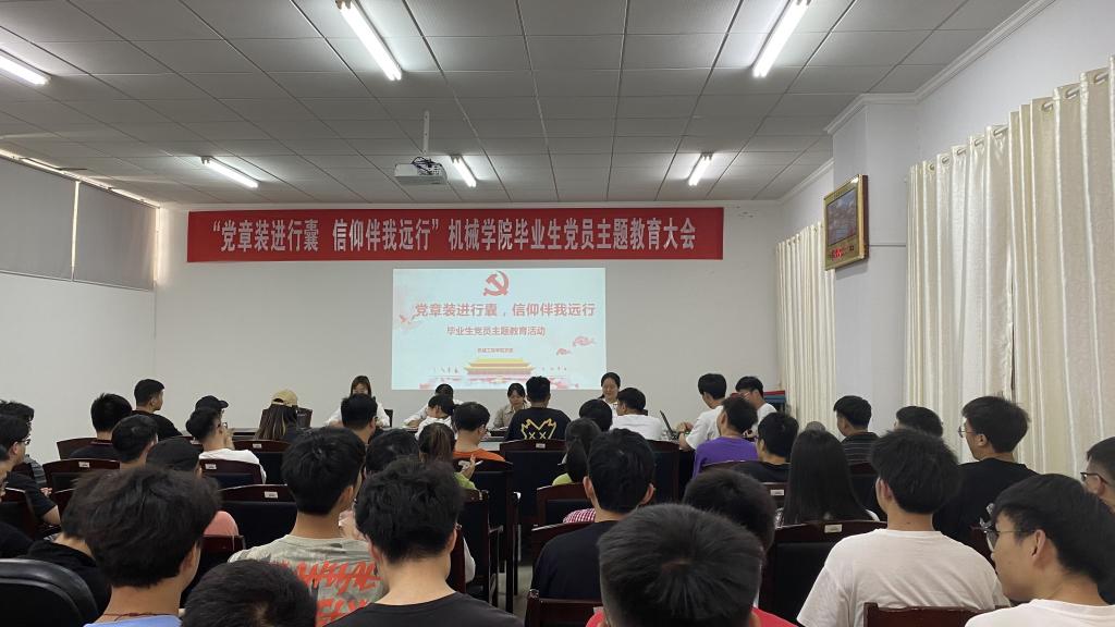 5月24日下午,tyc122ccVIP于16栋tyc122ccVIP会议室召开了“党章装进行囊,信仰伴我远行”毕业生党员主题教育活动。此次活动由研究生党支部书记王子嘉主持,机械工程公司党委书记胡文静、党委副书记徐湛、党委组织员李紫薇出席,47名毕业生党员全体参加。