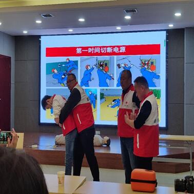 宣讲中,徐湘平简要介绍了红十字会的历史和人道主义援助事迹,提出了省内紧急救护知识普及率低下的问题。他强调了紧急救护知识的重要性并详细解释了从流鼻血怎样止血到冠心病、脑卒中、代谢紊乱综合征等疾病的特征、发病症状以及如何及早干预和急救的方法。在活动接近尾声时,徐湘平还组织员工学习使用AED来进行模拟心肺复苏。