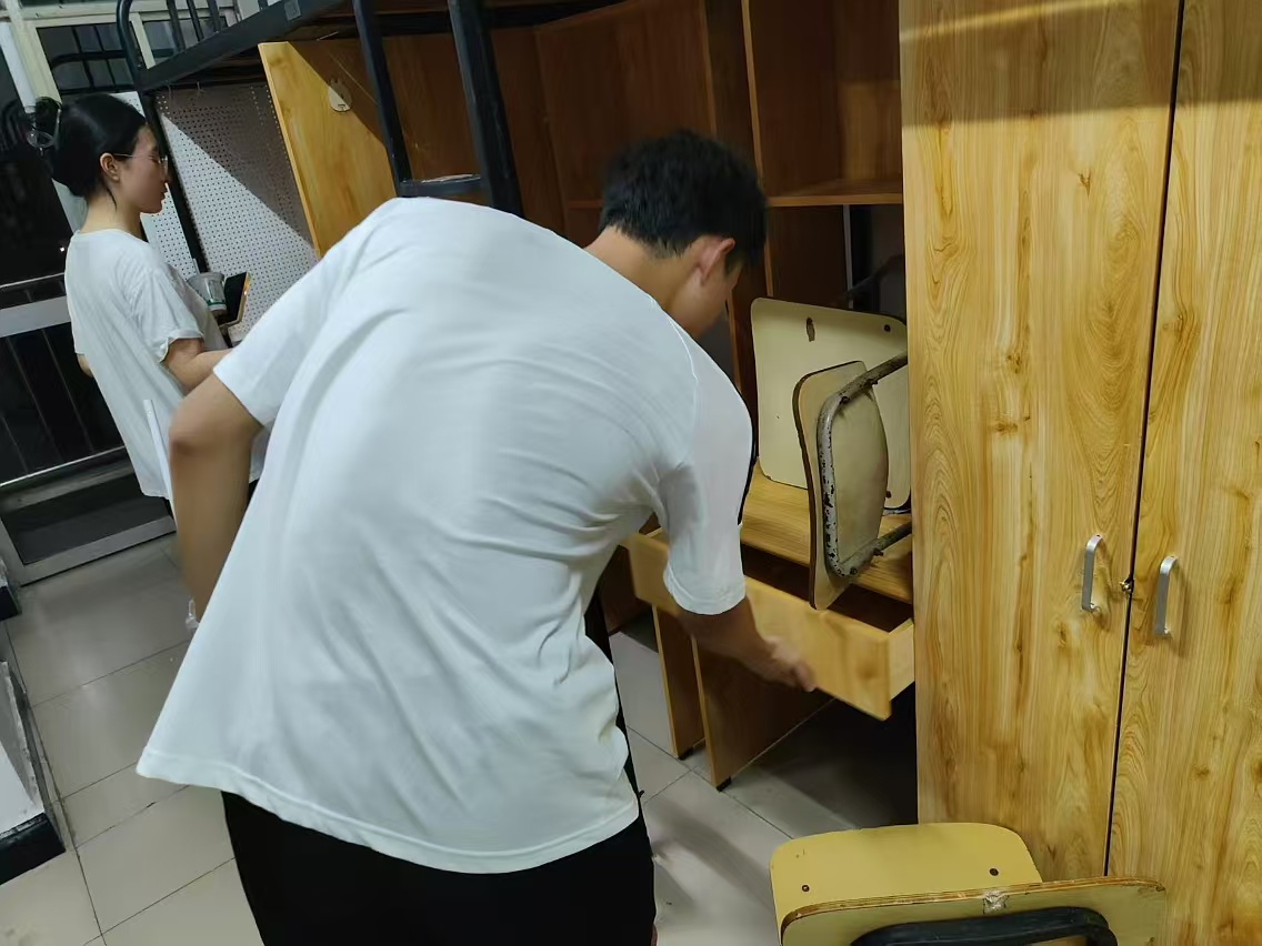 活动过程中,员工党员与新生助班们齐心协力,以高度的责任心和使命感投入到每一项劳动、检查中。他们不仅对宿舍的每一个角落进行细致入微的清扫,确保门窗明亮、地面洁净、垃圾清零,还特别注重对宿舍基础设施的全面检查。从床铺稳固到家具完好,每一项都经过严格的排查,确保新生入住后能够享受到安全、舒适的住宿条件。