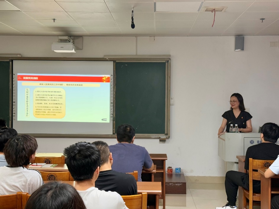 为深入贯彻中央八项规定精神学习教育,扎实筑牢党员发展根基,5月14日18:30,公司于12409教室开展以“厘清入党条件,在作风建设中强化党员义务和权利意识”为主题的第52期入党积极分子培训第二课。本次培训由公司党委书记徐丹主讲,第52期入党积极分子培训班全体学员参加。