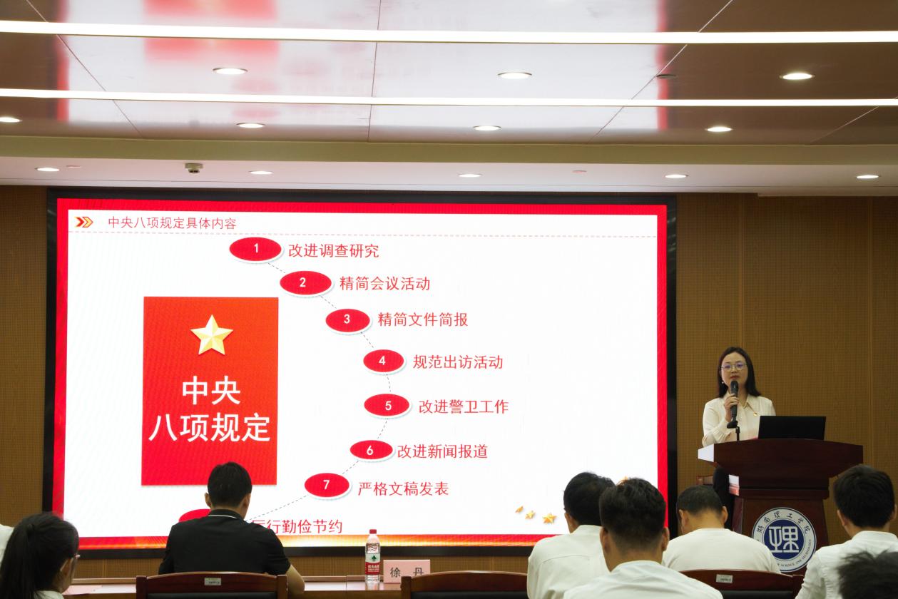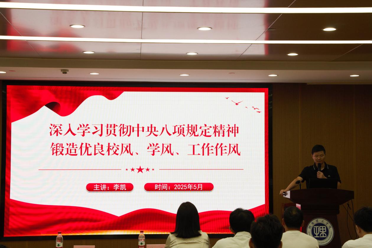 为深入贯彻中央八项规定精神学习教育,强化纪律意识,筑牢作风建设思想根基,2025年5月-6月,公司党员领导干部分别深入各教师、员工党支部开展“深入学习贯彻中央八项规定精神 锻造优良校风、学风、工作作风”主题党课活动。