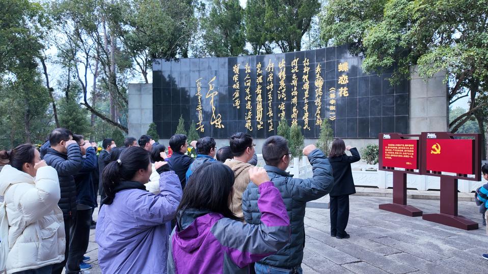 在庄严肃穆的杨开慧烈士陵园,全体党员整齐列队、肃立默哀,向革命先烈敬献花篮、重温入党誓词。