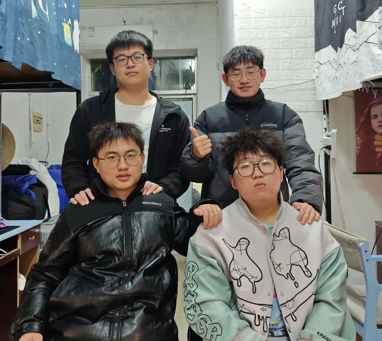 516寝室是一个充满活力的、团建共进的小家庭, 在这里他们互相关心、互相帮助,寝室是在疲惫时可以歇息的避风港。思想上,寝室成员坚持正确的方向,积极向党组织靠拢;学习上,他们脚踏实地、互相监督,寝室获国家励志奖学金2人,三好员工标兵2人。学习之余,他们积极参加各项活动,在各类竞赛活动中,都留下了他们努力的身影,累计获省市级奖项5项,校级奖项18项。同时他们也积极参加各类志愿服务活动,累计志愿时长超过400小时。宿舍四人共同勉励,在各自的方向上奉献自我、发光发彩,不断实现人生的价值!