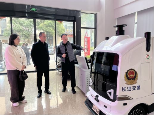 在长沙行深智能科技有限公司,丁董事长一行在企业负责人谭筠的陪同下参观了企业及部分产品。随后双方展开座谈,丁董事长向企业负责人介绍了学院的办学历史、办学特色、人才培养、学科专业建设等情况。谭筠代表公司向丁跃浇一行表示欢迎,并详细介绍了企业发展情况和机器人产品市场应用情况。双方还就团队建设、产学研合作、毕业生实习就业等方面进行了深入交流,并签订了实习与就业一体化基地建设协议,达成了校企深度合作的良好愿景。