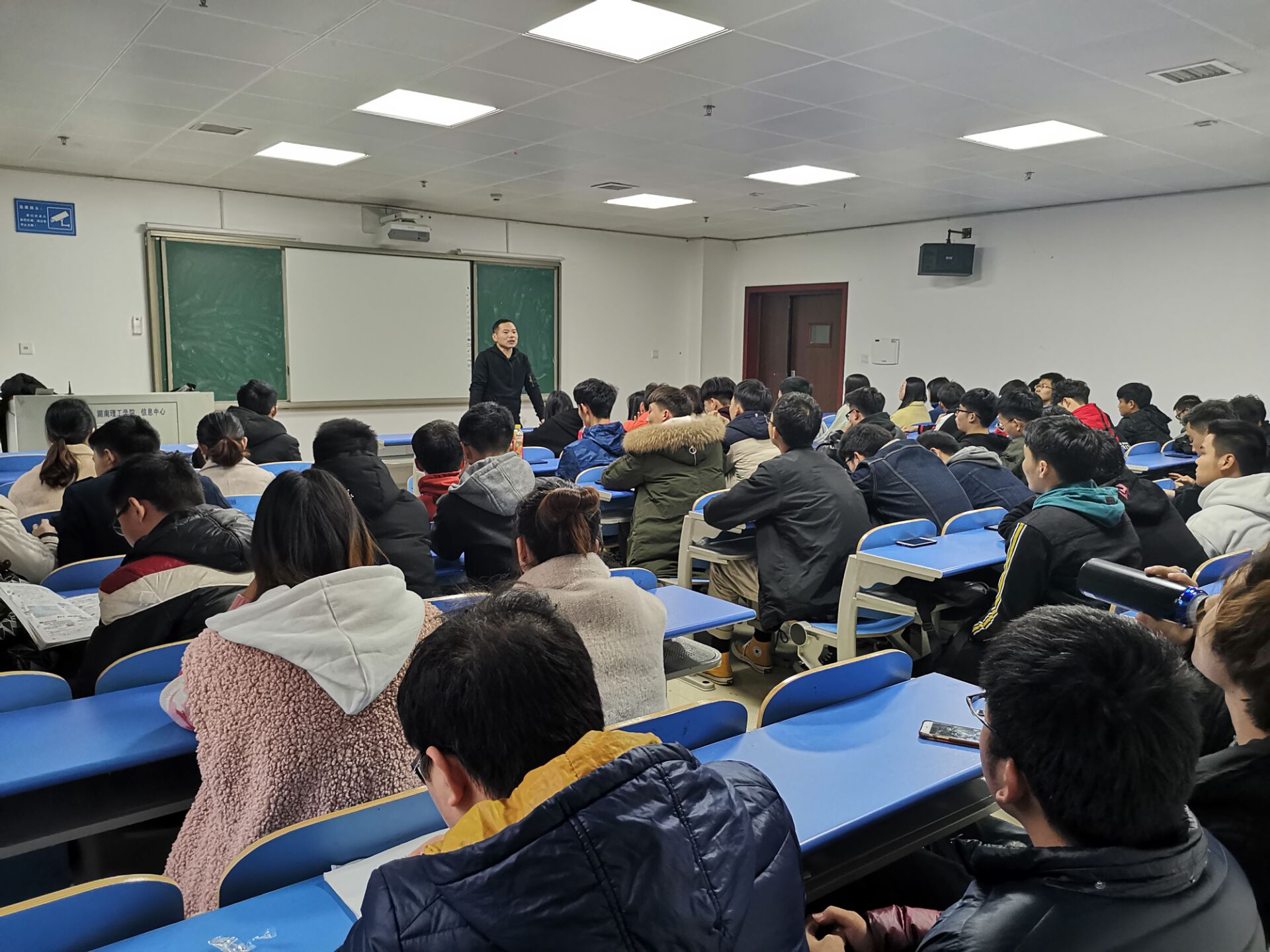 班会第一项,由班长朱正兴点到。第二项,强调关于考风考纪的问题。考风考纪是一个人竞技精神于自身素质的表现,我们应该严格遵守考试纪律,通过考试反应自身的真实学习情况。同时强调了学院加大了对考试的监管力度,一旦在考试中舞弊被发现,学院将处以严厉的处罚。学院还提倡各位同学相互监督,是必要从此杜绝考试舞弊行为。第三项,安全问题。本学期大三的员工讲开始实习,请各位同学在路上注意安全,每至一处要检查好自身的东西,切勿丢失。