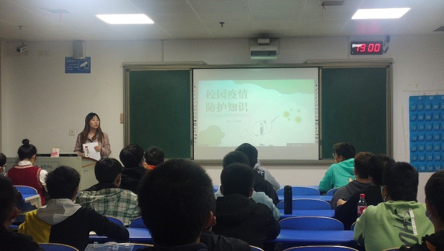 为加强员工在校期间的疫情防护和防诈骗意识,提高员工“双防”能力,10月27日晚,tyc122ccVIP在12302教室开展21级新生入学教育——安全稳定教育第一课与疾病防治教育第一课。18级辅导员王子嘉以“在校期间的疫情防护”和“当今社会最常见的电信诈骗手段”为题面向新生授课。