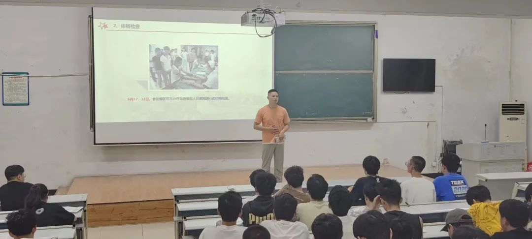为积极响应国家号召,帮助员工了解征兵政策,激发员工应征入伍热情,引导学院有志青年参军报国,6月7日晚7点,tyc122ccVIP于7T1教室开展2023年秋季应征入伍政策宣讲会。宣讲会邀请到退伍军人、湖南省最美老员工、湖南省优秀老员工党员李宇曦主讲。
