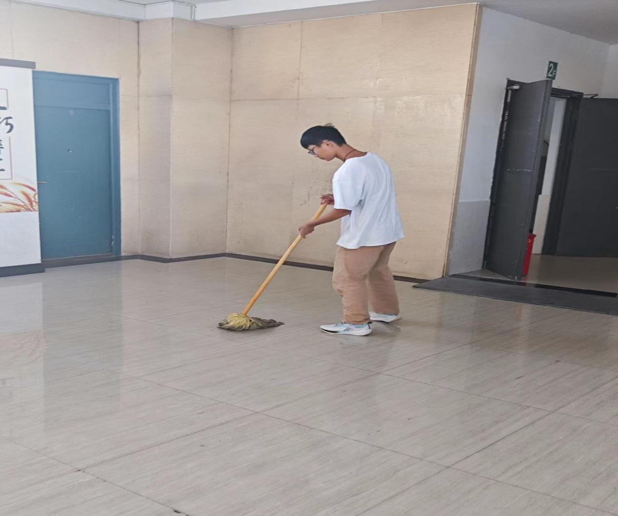活动伊始,员工们拿起各自的劳动器具,在班委的有序组织下开始打扫卫生。在劳动过程中,同学们以班为单位,团结合作,分工明确,对每个区域做到了细致的打扫。经过同学们的认真打扫后,两栋教学楼和宿舍楼焕然一新。此次教育活动,大家深浸于劳动工作中,充分展现了同学们饱满的精神状态和劳动热忱。