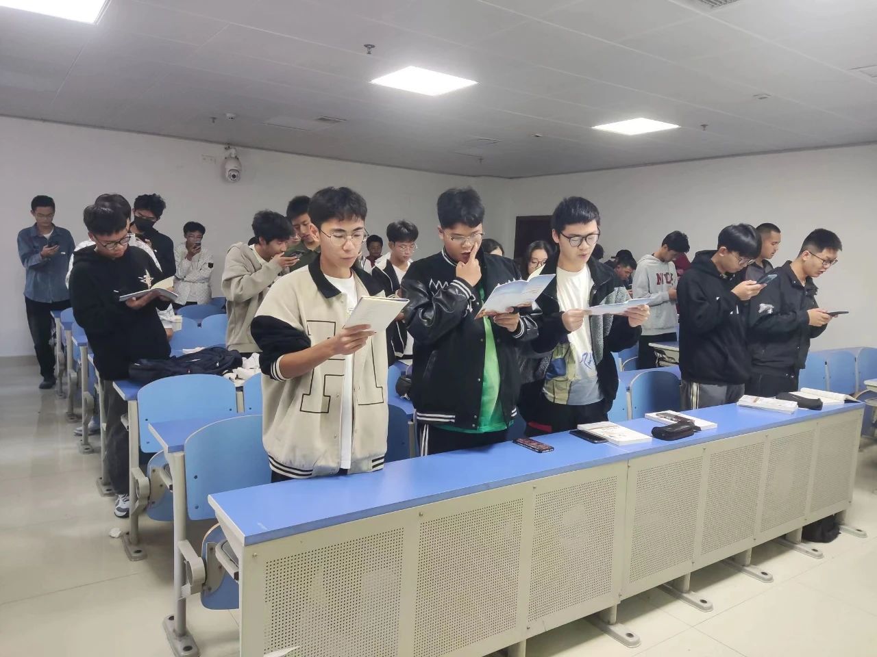 爱国,是一种坚定的民族精神,是一种振兴中华的责任感。为培养老员工的家国情怀与爱国主义,宣扬革命精神,深化爱国教育,自10月18日开始,公司开展了“老员工课前三分钟爱国朗读”活动。机器人工程专业23级员工积极响应学院号召开展诵读活动,由班长喻列列、团支书郭彦负责组织。