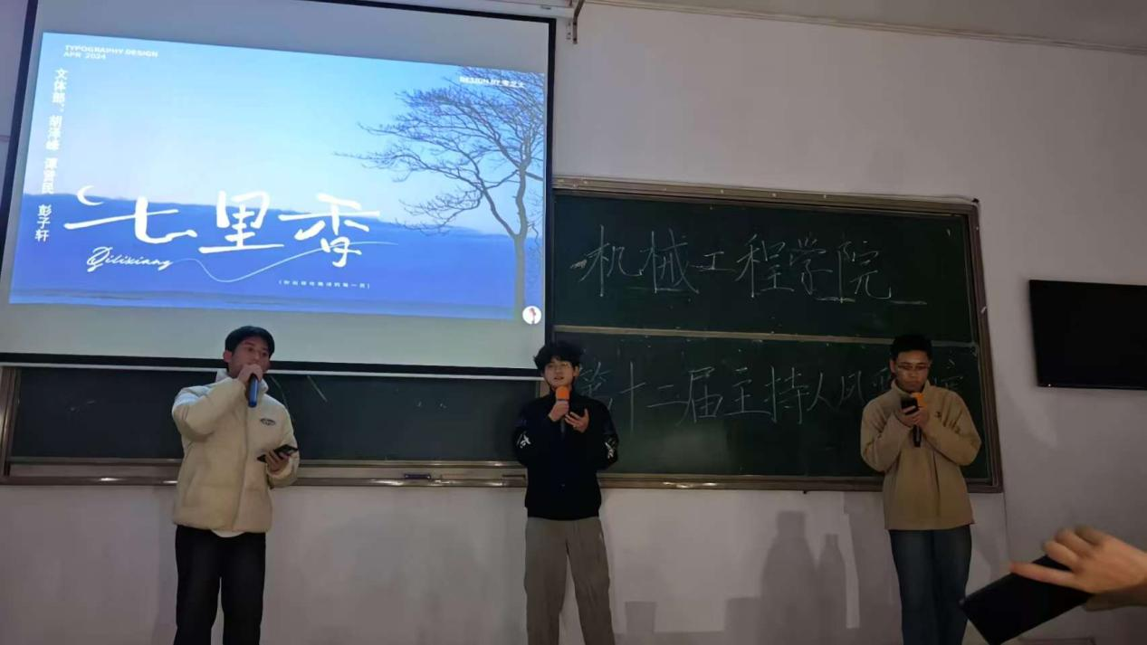 12 月 6 日 19:00,公司于 9T2 教室成功举办第十二届主持人风采大赛决赛。本次比赛特邀学院团委副书记曾英姿、学校老员工艺术团执行主席蔡馨悦、办公室主任郭维新、联络部部长窦玲燕以及第十一届主持人风采大赛冠军曾紫轩担任评委,大赛由陶晓灿主持。