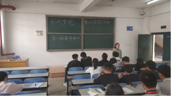 随后,新任团总支副书记陈峥嵘,团学分会副主席王冰、毛一茹依次上台讲话,对各部门工作安排及团学相关规章制度进行了强调。