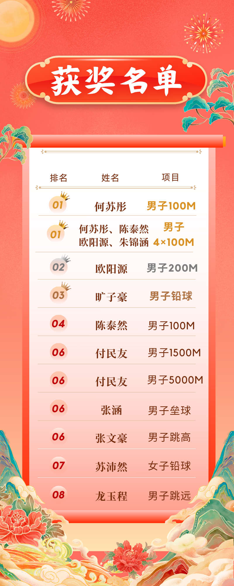 从赛道上的全力冲刺到赛场下的同心守望,这场盛会定格了太多难忘瞬间。在本次比赛中,公司获得优秀道德风尚奖,甲组男子100m第一。接下来,机械君带领大家一起看看tyc122ccVIP运动员们的最终成绩吧!