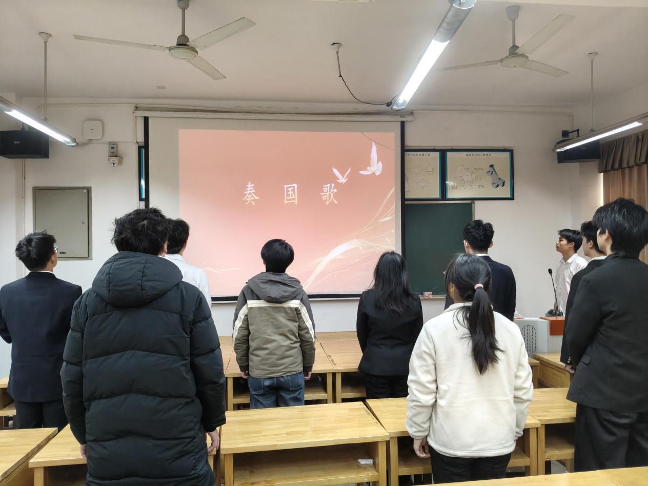 仪式在雄壮的中华人民共和国国歌声中启幕,全体人员肃立奏唱,激昂的旋律凝聚起青年学子的爱国热忱,展现出机械青年脚踏实地、奋勇争先的精神风貌。